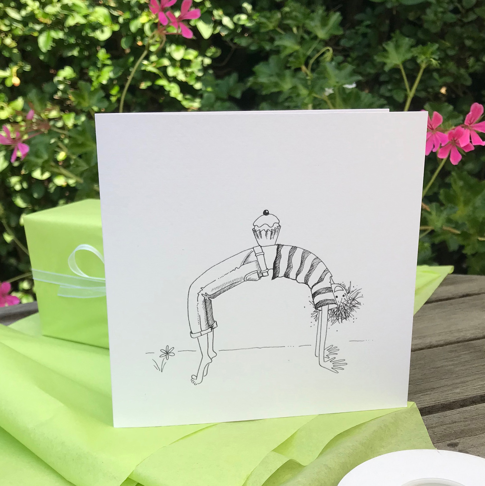 Pete is a dear character that arrived on my drawing board whilst I was doing my ‘A’ levels. I never worked out if he helped or hindered me in my work and private life! He has a habit of turning up in the most unexpected places, but more often than not on friends Birthday cards. His wardrobe has never really changed, always a stripy tee shirt, and now he tends to wear jeans, but he has always had a pair of tatty dungarees somewhere in his wardrobe, and more often than not bare feet! Pete has actually got a sister called Jane, she looks remarkably like Pete, same big smile and bare feet. Who knows Jane may turn up on some cards one day...... watch this space! I hope you enjoy Pete as much as I do, he just wants to make you smile!